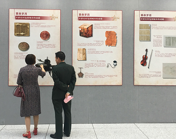 The exhibits include pictures of the earliest Chinese version of The Communist Manifesto in 1920, of enemy weapons captured by Chinese soldiers during the War Against Japanese Aggression (1931-45) and of Communist leaders' personal belongings.