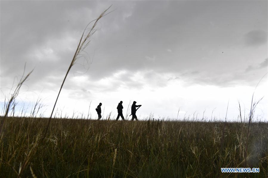 Observers of the Qinghai Lake National Nature Reserve Administration Bureau return from an observation at Hadatan wetland by the Qinghai Lake in Northwest China's Qinghai province, Sept 24, 2019. A three-day autumn observation around the Qinghai Lake by the observers of the Qinghai Lake National Nature Reserve Administration Bureau has concluded after the last observation at Daotanghe wetland. Observers studied and analyzed the ecological environment conditions of Qinghai Lake through collecting the records of wetlands and birds of about 20 observation spots along the Qinghai Lake. [Photo/Xinhua]