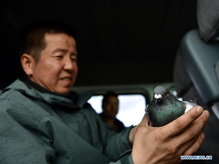 Wang Yanming, an observer of the Qinghai Lake National Nature Reserve Administration Bureau, cures a pigeon during observations by the Qinghai Lake in Northwest China's Qinghai province, Sept 24, 2019. A three-day autumn observation around the Qinghai Lake by the observers of the Qinghai Lake National Nature Reserve Administration Bureau has concluded after the last observation at Daotanghe wetland. Observers studied and analyzed the ecological environment conditions of Qinghai Lake through collecting the records of wetlands and birds of about 20 observation spots along the Qinghai Lake. [Photo/Xinhua]
