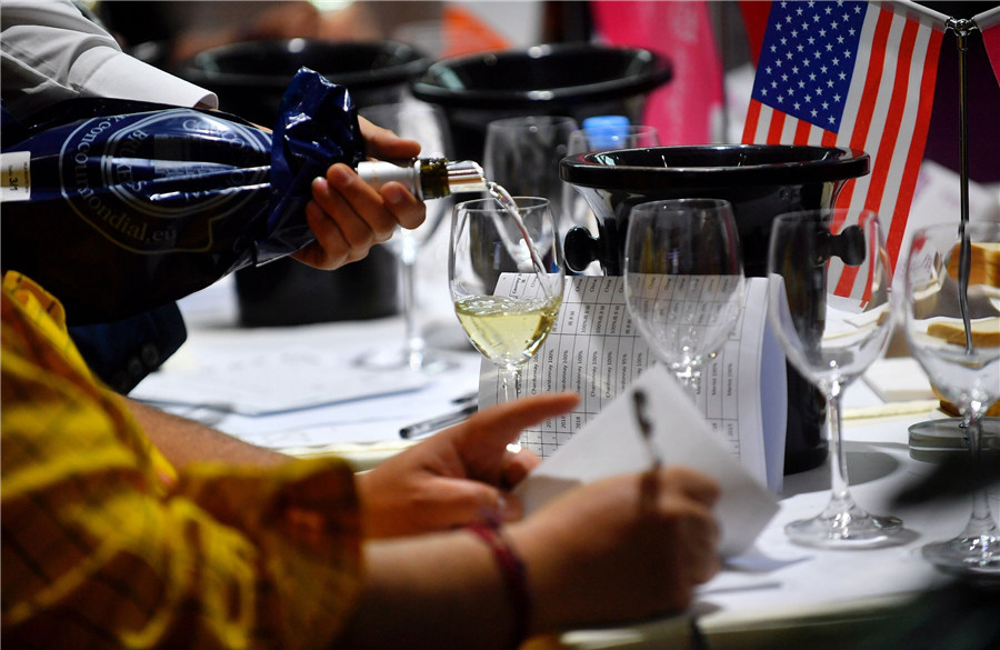 A judge marks the evaluation form during the 2019 Belt and Road International Wine and Spirit Competition, on Sept 25 in Yinchuan, Ningxia Hui autonomous region. [Photo by Li Jing/for chinadaily.com.cn]