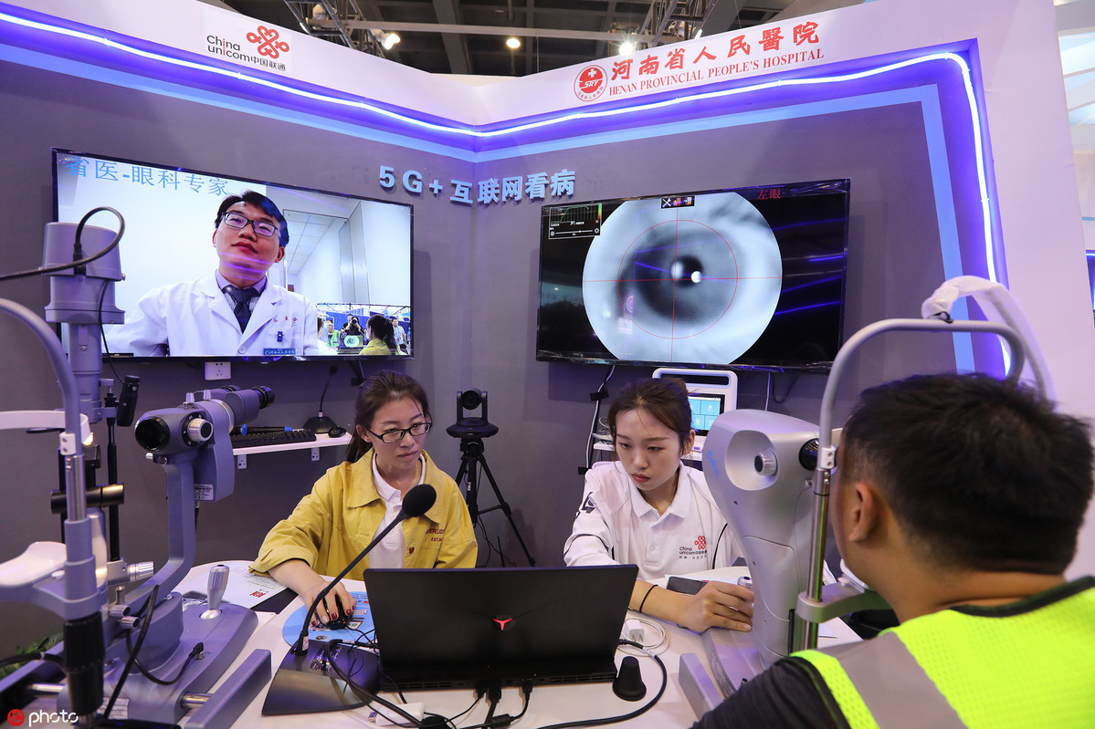 A man sees a doctor online aided by 5G+ technology in Zhengzhou, Central China's Henan province, on Sept 25, 2019. [Photo/IC]