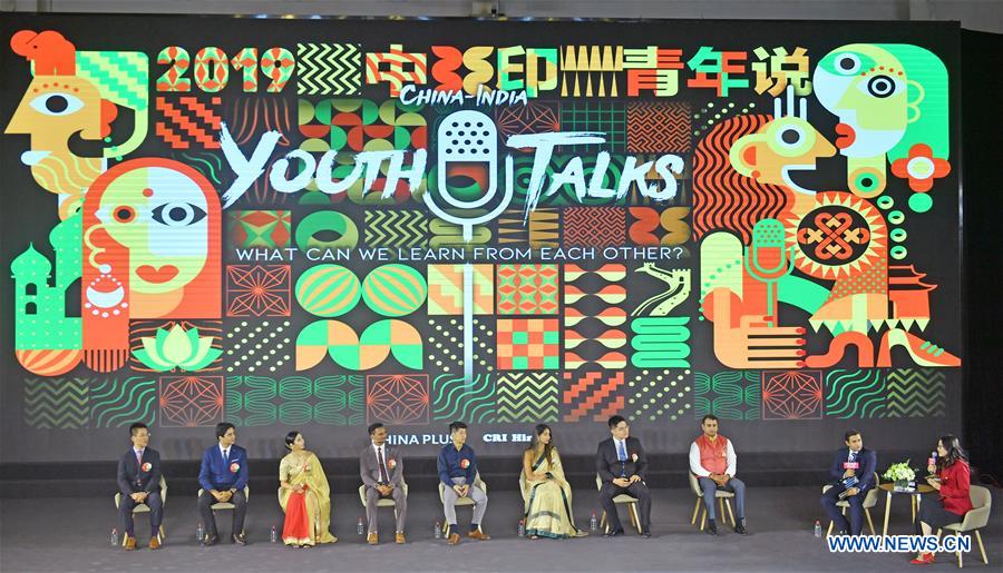 Youth representatives from China and India communicate during the China-India Youth Talks held in Beijing, capital of China, Sept. 28, 2019. Eight youth representatives from China and India exchanged their views on learning from each other during the China-India Youth Talks in Beijing on Saturday. (Xinhua/Sun Ruibo)