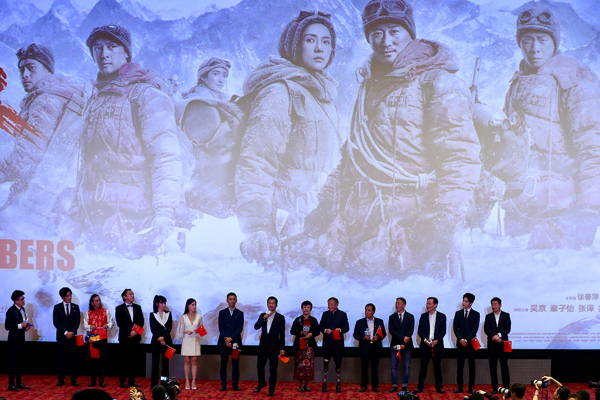 Applause, followed by exclamations of "We are all climbers!" exploded at the end of a sneak preview of The Climbers in Shanghai on Friday night, which was followed with the film's global launch ceremony when crew members of the highly expected Chinese blockbuster showed on stage for a face-to-face exchange with the audience.