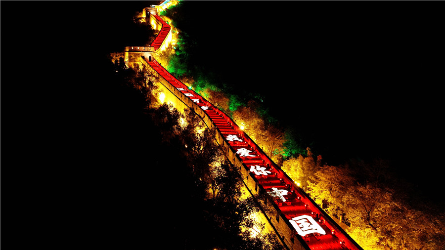 A light show held to mark the 70th anniversary of the founding of the People's Republic of China illuminated the Badaling section of the Great Wall in the capital's northwestern Yanqing district on Saturday night. China will celebrate the anniversary on Oct 1.