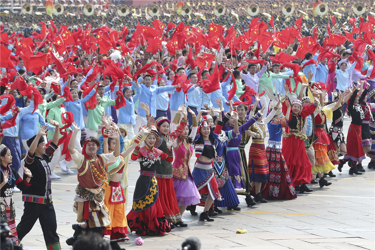 A formation featuring ethnic unity takes part in a mass rally celebrating the People's Republic of China's 70th anniversary in Beijing, capital of China, Oct 1, 2019. [Photo by Feng Yongbin/chinadaily.com.cn]