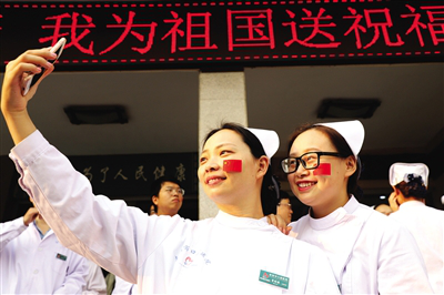Many citizens in the city took pictures of the wonderful moments in their lives using mobile phones to express their good wishes and joy for the 70th anniversary of the founding of the People’s Republic of China.