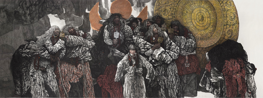 The collection, titled Out of Bayan Har, measures a total length of 124 meters, revealing not only a panoramic of the Bayan Har Mountains but also the rich history and culture of the Tibetans who live there. Li also wanted to hail the vibrancy of Chinese history and the spirit of its people. He had planned four other similar series of long-scroll paintings, each tracing the history of the Hui, Mongolian, Manchu and Han ethnic groups. Together with Out of Bayan Har, they would have formed a national epic.