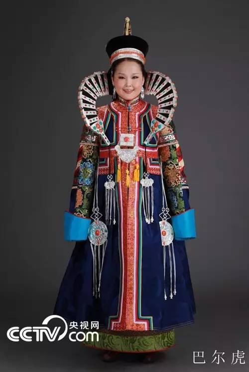 Preserving the characteristics of nomads and forest dwellers, Barga costumes not only present their tribal conventions, but also reflect the rooted animal worship. Women’s headgear is usually in the shape of horns of argali, with silver head hoops and hairpins embedded with different kinds of gems. In addition, women’s robes are one-piece and have long puff sleeves (reaching to the knees), arm bands and embroidered patterns. Long waistcoats with straight fronts are used to pair with robes. Due to the cold climate in the Hulunbuir area, leather robes are a large part of Bargas’ daily wear: when going or working outside, they usually don smoked fur robes, sheepskin coats and fur coats without an outer cloth layer; on ceremonial occasions, they take on leather ones with silk outer layer.