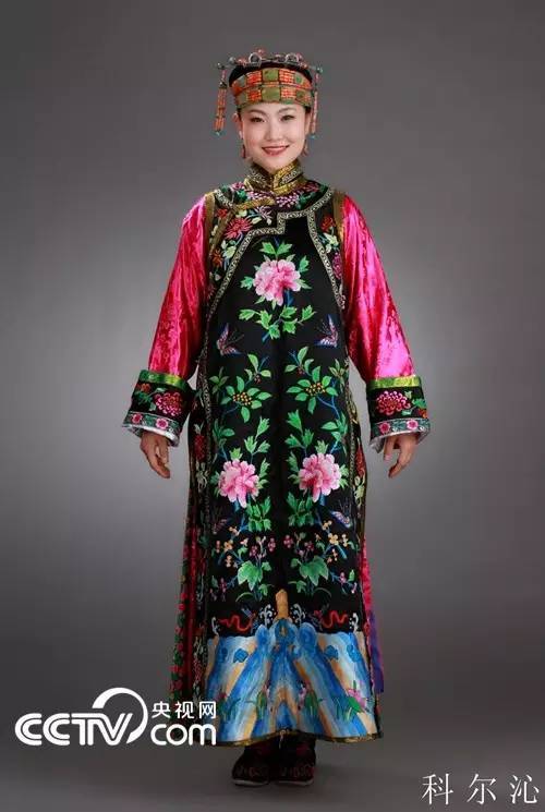 In addition to the basic Mongolian characteristics and tribal styles, Horqin costumes are also influenced by Manchu and Han cultures, which is reflected in women’s clothing. Symmetric patterns distinguish Horqin women’s costumes from other tribes. Furthermore, embroidered auspicious patterns are frequently seen in collar stands, fronts, cuffs, slits and the edges of hems on robes and waistcoats.