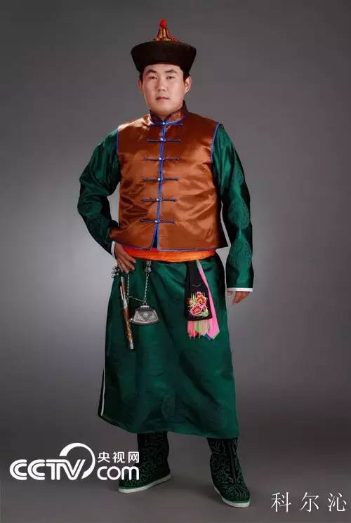 Model in the male costume of the Horqin tribe [Photo/cctv.com]