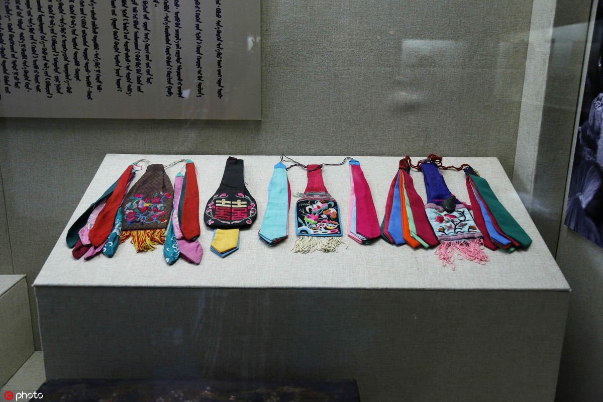 Embroidered tobacco and pipe pouches of the Horqin tribe [Photo/IC]