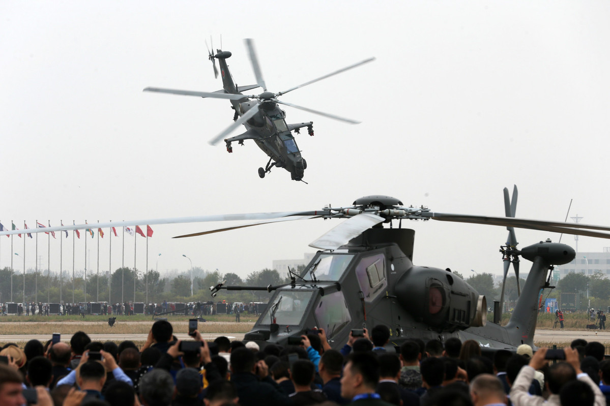 A helicopter flies at the China Helicopter Expo 2019 on Oct 10, 2019. [Photo by Wang Zhuangfei/chinadaily.com.cn]