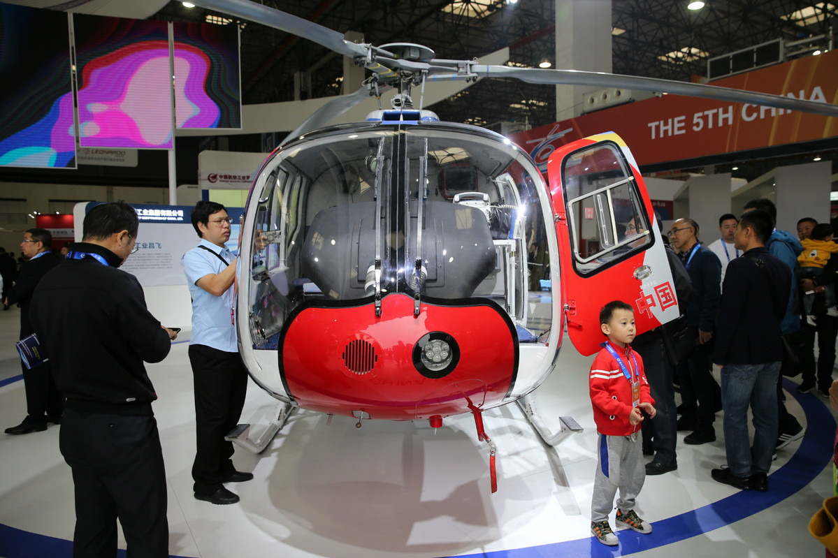 Visitors are pictured at the China Helicopter Expo 2019 in North China's Tianjin on Oct 10, 2019. [Photo by Wang Zhuangfei/chinadaily.com.cn]