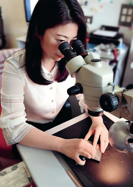Dong Qi, who works for the Postage Stamp Printing Bureau, under the China Post Group Corporation (in Beijing), is one of two third-generation inheritors of the stamp-engraving craft. [For Women of China]