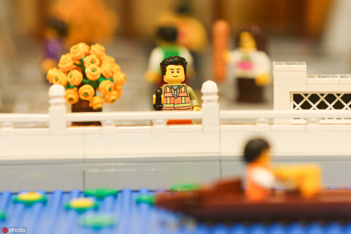 A closer look at the model of Ziyun Pavilion at a Lego store in Xi'an, Shaanxi province, Oct 7, 2019. [Photo/IC]