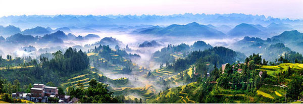 This photo fully displays the splendor and beauty of Nandan in autumn, which wins first prize in the natural scenery category of the contest. [Photo by Bian Jianmin/Hechi Daily]