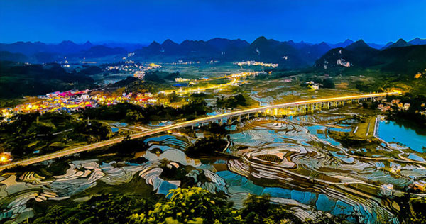 The beautiful night scene of terraced fields in Baping village in Nandan county of Hechi is thoroughly presented in the third prize winner of the natural scenery category. [Photo by Wei Kai/Hechi Daily]