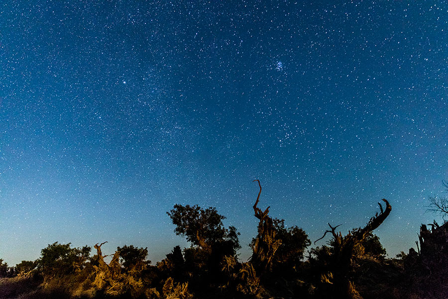 The forest of Euphrates poplar trees in Yiwu is an ideal site to take shots of stars. [Photo provided to China Daily]