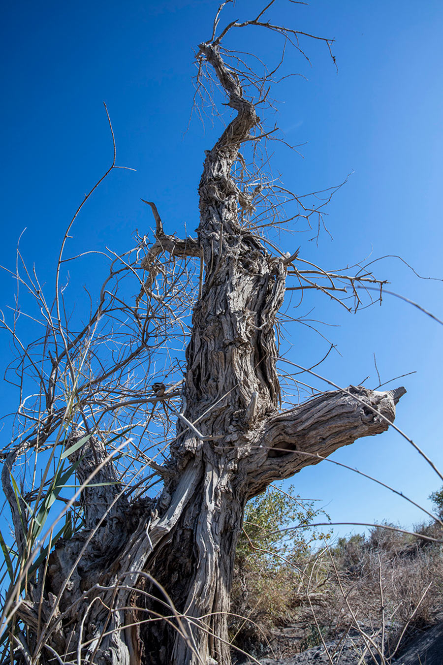 A dead Euphrates poplar tree stands as a witness to the passage of time in Yiwu. [Photo provided to China Daily]