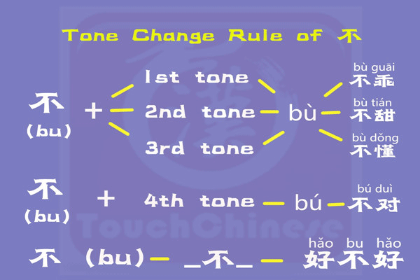 “不” becomes a second tone when followed by a fourth tone character. It is a fourth tone syllable by itself and when followed by other four tones then the following will happen.
