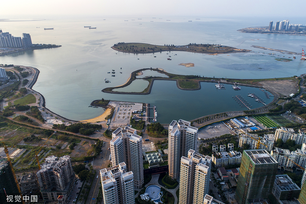 Buildings hug the coast of Haikou Bay, South China's Hainan province. [Photo/VCG]