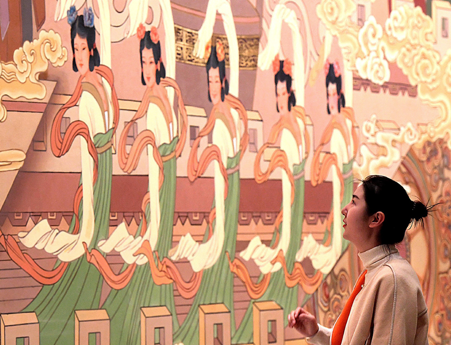 A woman visits the Yingtianmen site museum of the National Archaeological Site Park of Sui-Tang Luoyang City in Luoyang city, Central China's Henan province on Oct 15, 2019. In recent days, the Yingtianmen site museum of the park opened to the public. The Yingtianmen gate was built in Sui Dynasty (581-618). [Photo/Xinhua]