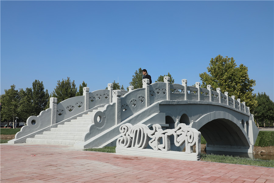 A 3D-printed concrete bridge has been completed and put into use at a university in North China's Tianjin municipality, and it is believed to have the longest span among its kind, according to Hebei University of Technology.