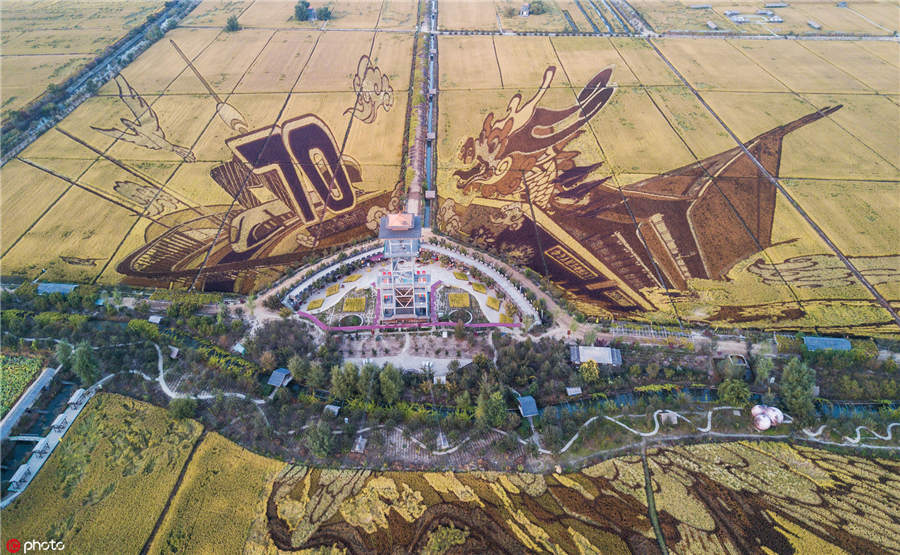 Paddy field art celebrates the 70th anniversary of PRC's founding