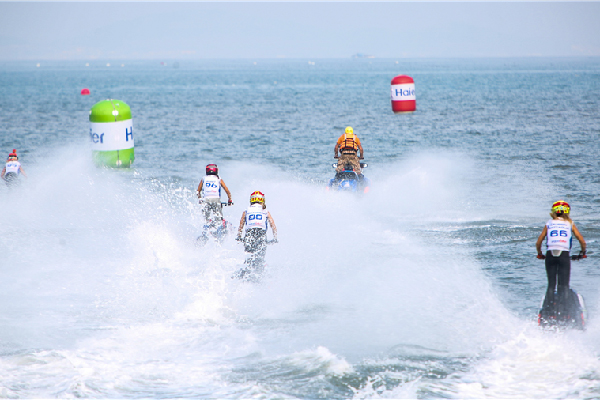 Riders compete in the Union Internationale Motonautique - Aquabike Promotion Grand Prix in Qingdao, East China’s Shandong province, which ended on Sunday. The event is one of the fastest, most demanding and entertaining sports on water attracting the world’s best riders. [Photo provided to chinadaily.com.cn]