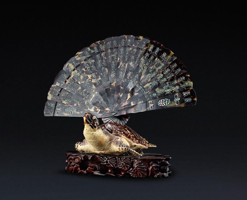 This is a folding fan made of tortoise shell and 100 longevity characters of abalone shell, incorporating traditional Chinese culture. [Photo provided to chinadaily.com.cn]