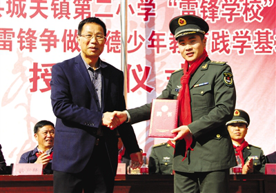 At the ceremony, a Lei Feng statue was unveiled at the school. The school also issued appointment letters of "After-school Activity Counselor" to Lei Feng's class soldiers.