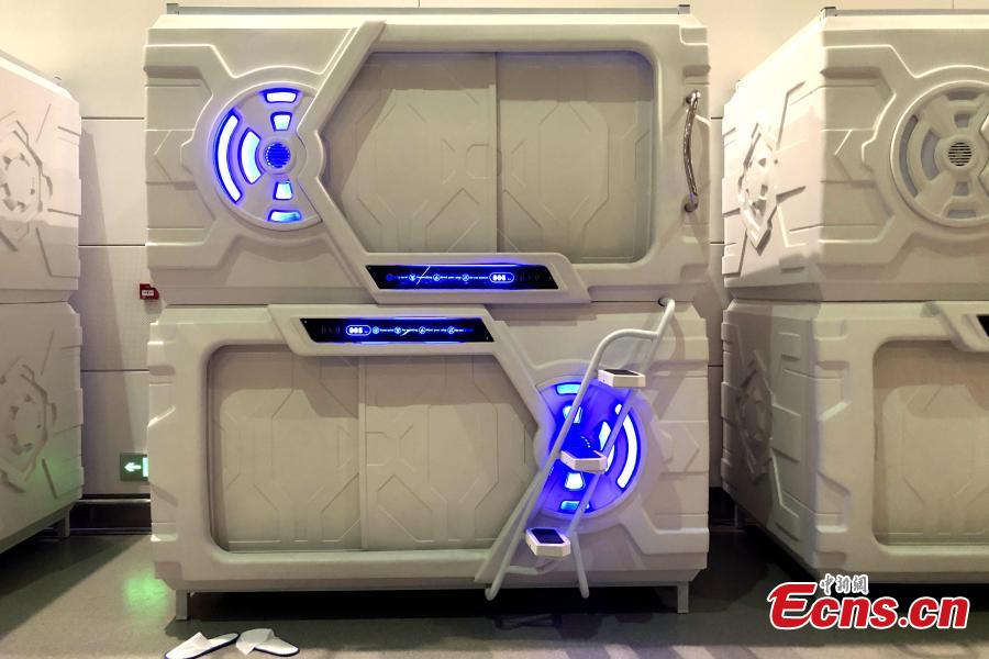 Take a Nap hotel, which features sleek white capsules designed to resemble space pods, opens in Hedong International Airport in Yinchuan city, Northwest China's Ningxia Hui autonomous region, Oct 20, 2019. The hotel is aimed at those looking for a quick snooze and charges 60 yuan ($8.5) per four hours during the daytime. The hotel says its room occupancy rate is usually 70 percent. [Photo/China News Service]
