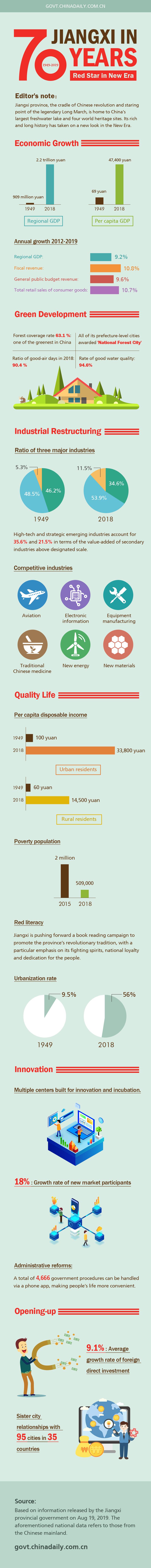 Jiangxi province, the cradle of Chinese revolution and staring point of the legendary Long March, is home to China's largest freshwater lake and four world heritage sites. Its rich and long history has taken on a new look in the New Era.