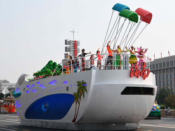 The Hainan thematic float started its preparation in March this year and was made under concerted efforts from nine departments in the province. It aimed to display the development achievements, as well as the distinctive local features of the South China province.