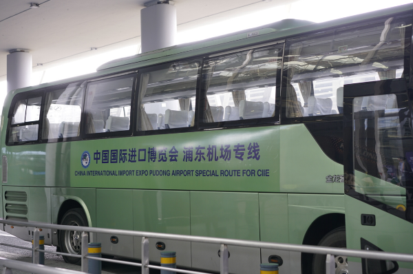 The CIIE Pudong Airport Special Route in front of the Shanghai Pudong International Airport. [Photo by He Qi /chinadaily.com.cn]