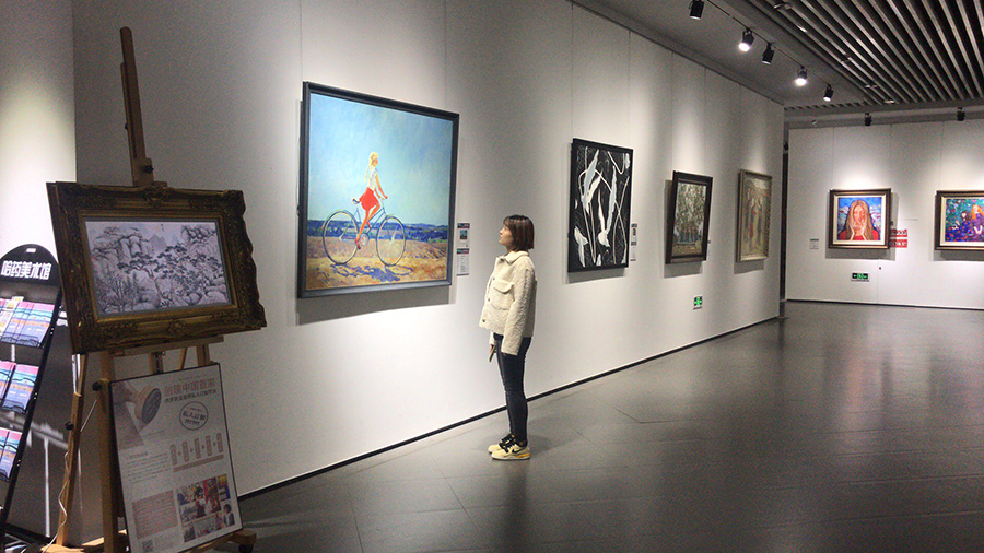A visitor appreciates Russian oil paintings at Harbin Gallery in Harbin, capital of Northeast China's Heilongjiang province. [Photo provided to chinadaily.com.cn]