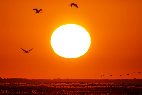 White cranes fly to Momoge National Nature Reserve in Zhenlai town, Northeast China's Jilin province. [Photo by Zhao Lengbing for chinadaily.com.cn]