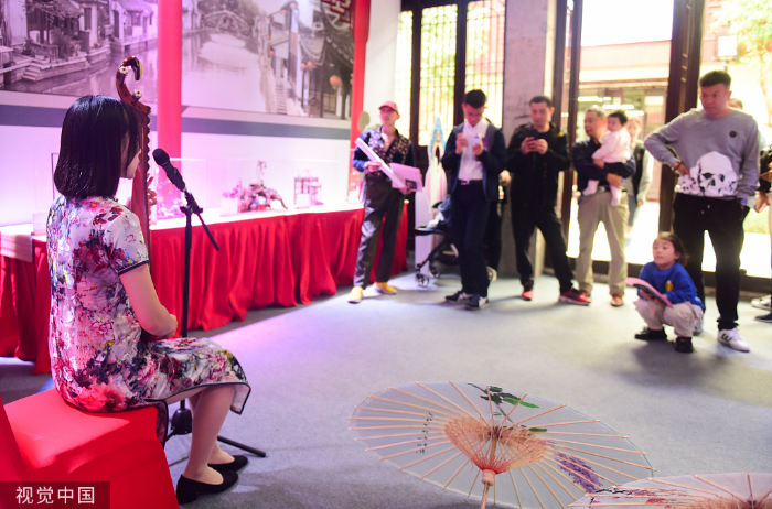 Visitors watch a performance at a theme exhibition for Suzhou Design Week on Oct 26, 2019. [Photo/VCG]