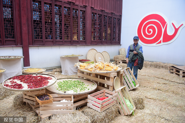 Agricultural products are displayed at a theme exhibition for Suzhou Design Week. [Photo/VCG]
