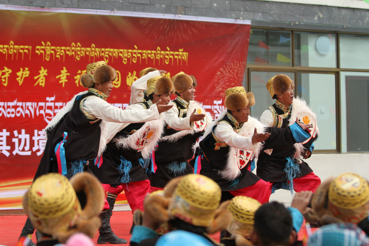A local art troupe performs at the resettlement celebration. [Photo provided to chinadaily.com.cn]