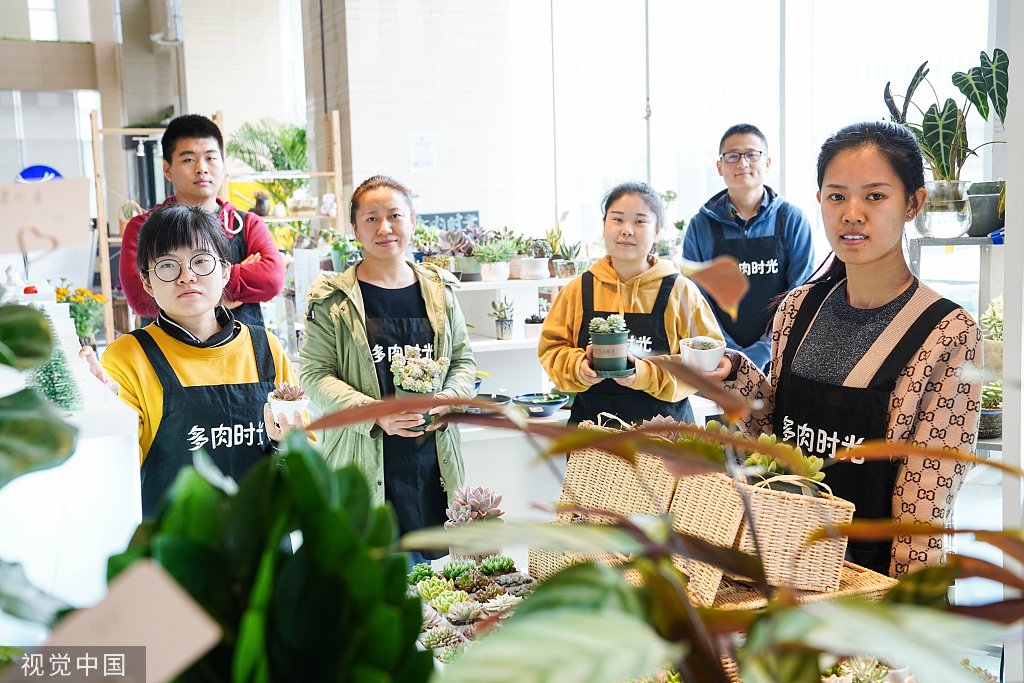 Dong Miaoqiang, who started the business one year ago, said working in the store is meaningful to the hearing-impaired staff, even though profits from succulent sales are decreasing.