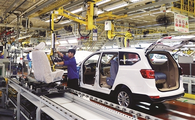 The busy factory of a car manufacturer in Liuzhou. [Photo by Tan Ke/gxnews.com.cn]