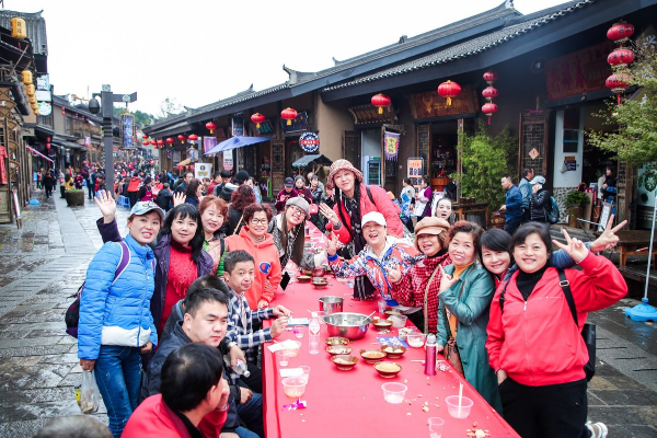 Tourists enjoy a meal during the harvest festival in Danzhai, Oct 26, 2019. [Photo provided to chinadaily.com.cn]
