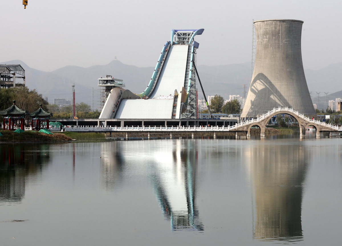 The construction of a ski jumping hill is completed in Beijing after more than 300 days of construction, Nov 1, 2019. The facility is the first new venue built for the 2022 Winter Olympics and the only one for snow events in Beijing. Provided to China Daily