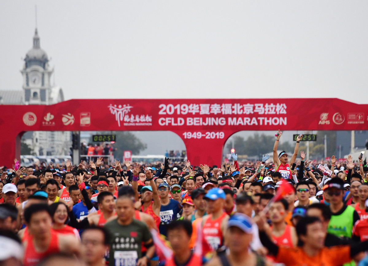 Runners compete at the 2019 Beijing Marathon in Beijing, on Nov 3, 2019. [Photo/Xinhua]