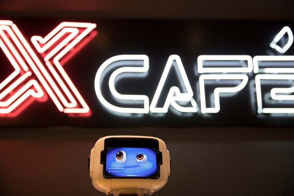 A robot receptionist at JD Restaurant in Binhai New Area. [Photo/People's Daily Online]
