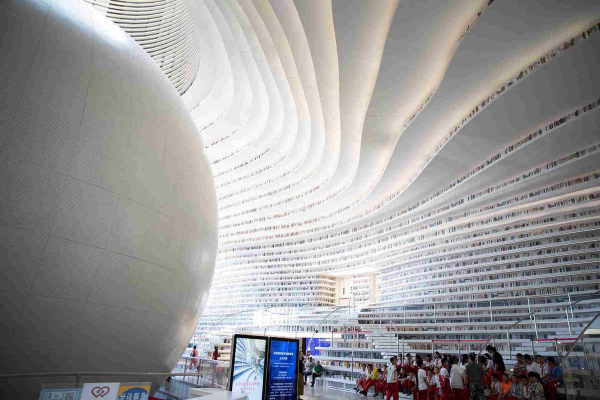 Binhai New Area Library is being referred to as the world's most beautiful library. [Photo/People's Daily Online]