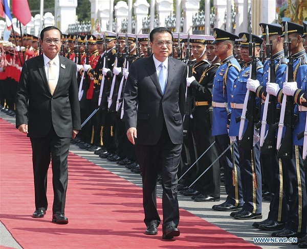 Li said China appreciates Thailand's efforts as the rotating chair of the Association of Southeast Asian Nations (ASEAN) in advancing China-ASEAN relations, particularly in pushing forward the basic conclusion of the negotiations of the Regional Comprehensive Economic Partnership agreement.