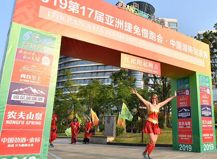 The Red Dress Run held by Hash House Harriers, the first event of the 17th Asian Hash Run 2019, is about to start in the Civil Square of Zhangjiajie at 15:00 pm, Nov 7.
