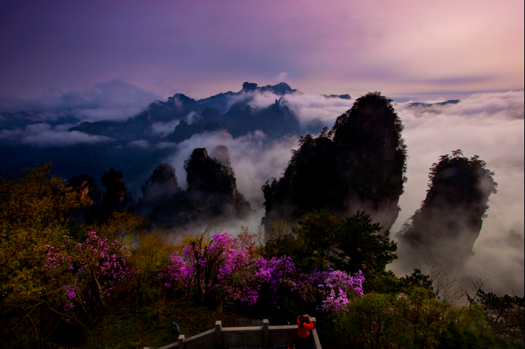 You can ride a cableway down and stay at Wulingyuan Scenic Area at night.